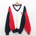 L★古着 長袖 セーター メンズ 90年代 90s センチュリー21 マルチカラー コットン クルーネック USA製 紺