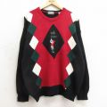 L★古着 長袖 セーター メンズ 90年代 90s ゴルフ 刺繍 コットン クルーネック USA製 赤他