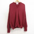 【商品名】 L★古着 長袖 セーター メンズ 80年代 80s 無地 アクリル Vネック USA製 エンジ系