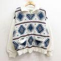 【商品名】 XL★古着 長袖 フルジップ ニット カーディガン メンズ 00年代 00s ネイティブ柄 ラグ柄 アクリル 白他