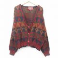 XL★古着 長袖 ニット カーディガン メンズ 90年代 90s 大きいサイズ アクリル エンジ他 24nov16 中古 トップス