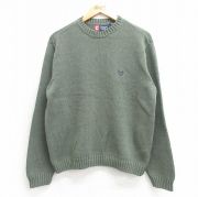 M★古着 チャップス 長袖 セーター メンズ ワンポイントロゴ コットン クルーネック 緑系