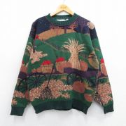 M★古着 長袖 セーター メンズ 90年代 90s 木 カボチャ コットン クルーネック USA製 緑他