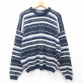 XL★古着 長袖 セーター メンズ 90年代 90s アクリル クルーネック USA製 紺 ネイビー 24nov26 中古 ニット トップス