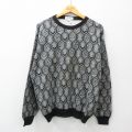 XL★古着 長袖 セーター メンズ 90年代 90s 総柄 クルーネック イタリア製 紺他
