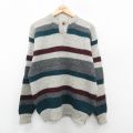 【商品名】 L★古着 長袖 セーター メンズ 90年代 90s ウール クルーネック グレー他 ボーダー