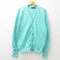 【商品名】 L★古着 長袖 ニット カーディガン メンズ 80年代 80s 無地 アクリル USA製 青緑