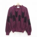 【50%OFF】L★古着 ロンドンフォグ 長袖 セーター メンズ 90年代 90s クルーネック USA製 紫他 パープル 24dec04 中古 ニット トップス