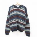 L★古着 長袖 セーター メンズ 90年代 90s マルチカラー クルーネック 紺他