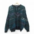 XL★古着 長袖 セーター メンズ 90年代 90s ネイティブ柄 ラグ柄 クルーネック 緑他