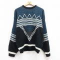 【商品名】 L★古着 長袖 セーター メンズ 00年代 00s レザー使用 アクリル クルーネック 紺他