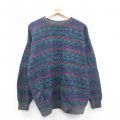 XL★古着 長袖 セーター メンズ 90年代 90s ネイティブ柄 ラグ柄 大きいサイズ アクリル クルーネック 紺他