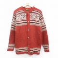 M★古着 長袖 ビンテージジーンズ ニット カーディガン メンズ 70年代 70s アクリル 赤