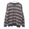 XL★古着 長袖 セーター メンズ 90年代 90s ネイティブ柄 ラグ柄 大きいサイズ アクリル クルーネック 紺他