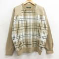 XL★古着 長袖 セーター メンズ 90年代 90s ゴルフ 大きいサイズ クルーネック USA製 ベージュ系他 チェック