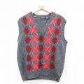 【商品名】 L★古着 Par Four ニット ベスト メンズ 90年代 90s アーガイル ウール Vネック グレー