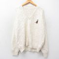 【商品名】 XL★古着 長袖 セーター メンズ ゴルフ Vネック 生成り