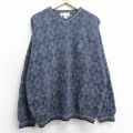 XL★古着 長袖 セーター メンズ 90年代 90s アーガイル 大きいサイズ クルーネック 紺他
