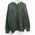 【商品名】 L★古着 長袖 セーター メンズ 00年代 00s アーガイル ラムウール Vネック 濃緑