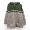 【商品名】 XL★古着 長袖 フルジップ ニット カーディガン パーカー メンズ 00年代 00s ウール 緑他 内側フリース