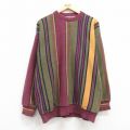 【商品名】 L★古着 長袖 セーター メンズ 90年代 90s コットン クルーネック USA製 緑系他 ストライプ【spe】