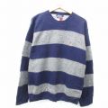 L★古着 トミーヒルフィガー TOMMY HILFIGER 長袖 ブランド セーター メンズ 90年代 90s ワンポイントロゴ シェットランドウール クルーネック 紺他 ネイビー ボーダー 25feb05 中古 ニット トップス
