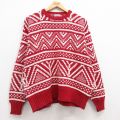 L★古着 長袖 ノルディック セーター メンズ 90年代 90s 雪柄 コットン クルーネック 赤他