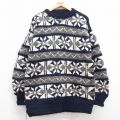 【商品名】 L★古着 長袖 ノルディック セーター メンズ 90年代 90s 雪柄 ハンドメイド ウール モックネック ハイネック エクアドル製 紺他【spe】