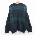【商品名】 XL★古着 ランズエンド 長袖 セーター メンズ 90年代 90s 大きいサイズ コットン クルーネック USA製 紺他 チェック【spe】