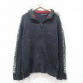 XL★古着 長袖 フルジップ ニット カーディガン メンズ 90年代 90s ネイティブ柄 ラグ柄 大きいサイズ アクリル 紺他 内側サーマル