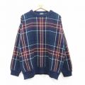 【商品名】 XL★古着 長袖 セーター メンズ 90年代 90s コットン クルーネック 紺他 チェック