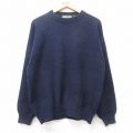 L★古着 長袖 セーター メンズ 90年代 90s 手織り クルーネック 紺
