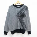 L★古着 長袖 セーター メンズ 90年代 90s レザー使用 アクリル クルーネック 黒他
