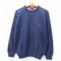 L★古着 長袖 セーター メンズ 90年代 90s コットン Vネック USA製 紺