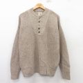 L★古着 エディーバウアー 長袖 セーター メンズ 90年代 90s コットン ヘンリーネック ベージュ