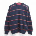 【商品名】 L★古着 トミーヒルフィガー 長袖 ブランド セーター メンズ 90年代 90s ワンポイントロゴ コットン クルーネック 紺他 ボーダー【spe】