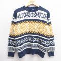 L★古着 長袖 セーター メンズ 90年代 90s フェアアイル コットン クルーネック 紺他