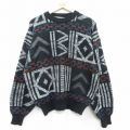 XL★古着 長袖 セーター メンズ 90年代 90s ラグ柄 大きいサイズ アクリル クルーネック 黒他
