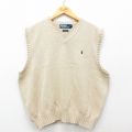 【商品名】 L★古着 ラルフローレン ブランド ニット ベスト メンズ 90年代 90s ワンポイントロゴ コットン Vネック ベージュ