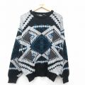 XL★古着 長袖 セーター メンズ 90年代 90s ラグ柄 大きいサイズ アクリル クルーネック 黒他