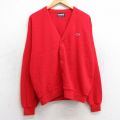 L★古着 IZOD 長袖 ニット カーディガン メンズ 90年代 90s ワンポイントロゴ USA製 赤