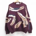 【商品名】 XL★古着 長袖 セーター メンズ 90年代 90s 手編み ハンドニット 大きいサイズ コットン クルーネック エンジ他
