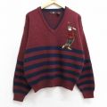 M★古着 長袖 セーター メンズ 90年代 90s アクリル Vネック エンジ系他