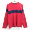 【商品名】 S★古着 トミーヒルフィガー 長袖 ブランド セーター メンズ 90年代 90s ワンポイントロゴ ツートンカラー コットン クルーネック 赤