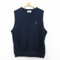L★古着 IZOD ニット ベスト メンズ 90年代 90s ワンポイントロゴ アクリル Vネック USA製 紺