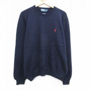 XL★古着 ラルフローレン 長袖 ブランド セーター メンズ 90年代 90s ワンポイントロゴ 大きいサイズ コットン クルーネック 紺