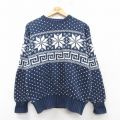 【商品名】 L★古着 ギャップ GAP 長袖 ノルディック セーター メンズ 90年代 90s 雪柄 バーズアイ コットン クルーネック 紺他【spe】