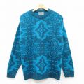 M★古着 ルティグレ 長袖 セーター メンズ 80年代 80s アクリル クルーネック USA製 青緑系他 25feb28 中古 ニット トップス