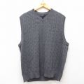 L★古着 ケーブル ニット ベスト メンズ コットン Vネック グレー 25mar01 中古 トップス