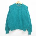 XL★古着 長袖 セーター メンズ 90年代 90s コットン クルーネック USA製 青緑